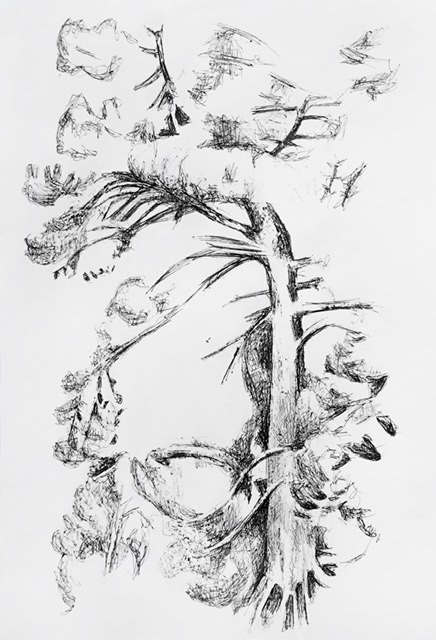 Encre et acrylique blanche sur papier.
