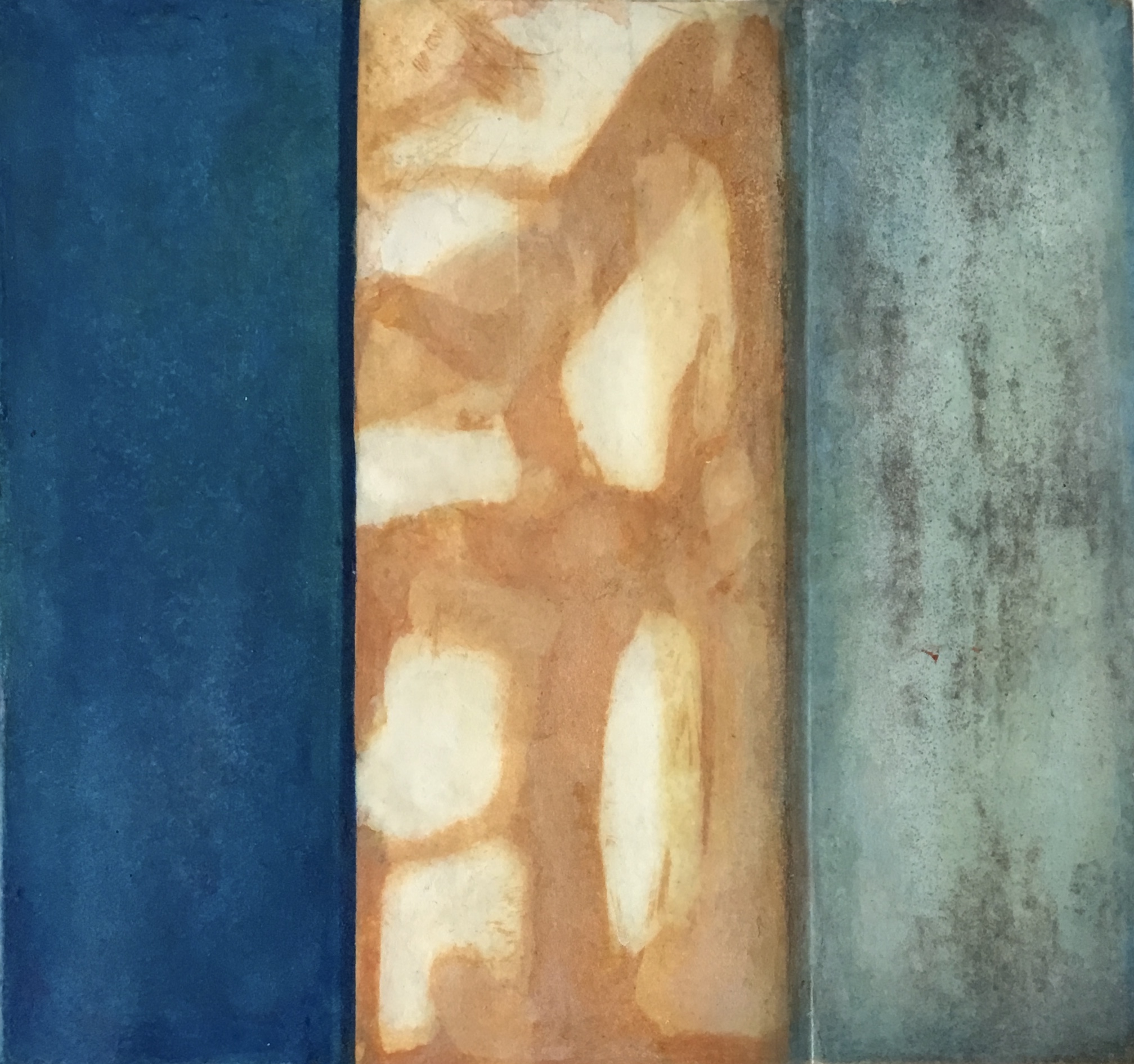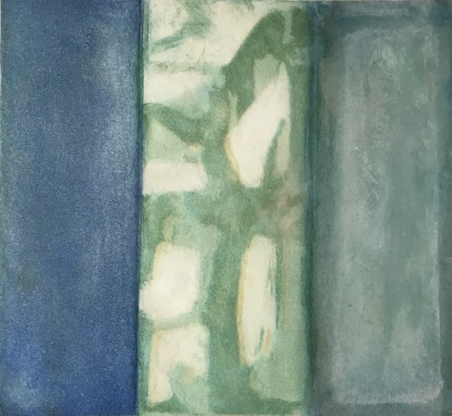 Vitrail. Peinture sur panneaux de verre doublé, assemblés par la technique Tiffany. 15 x 35 cm, 13 x 35 cm, 14 x 35 cm